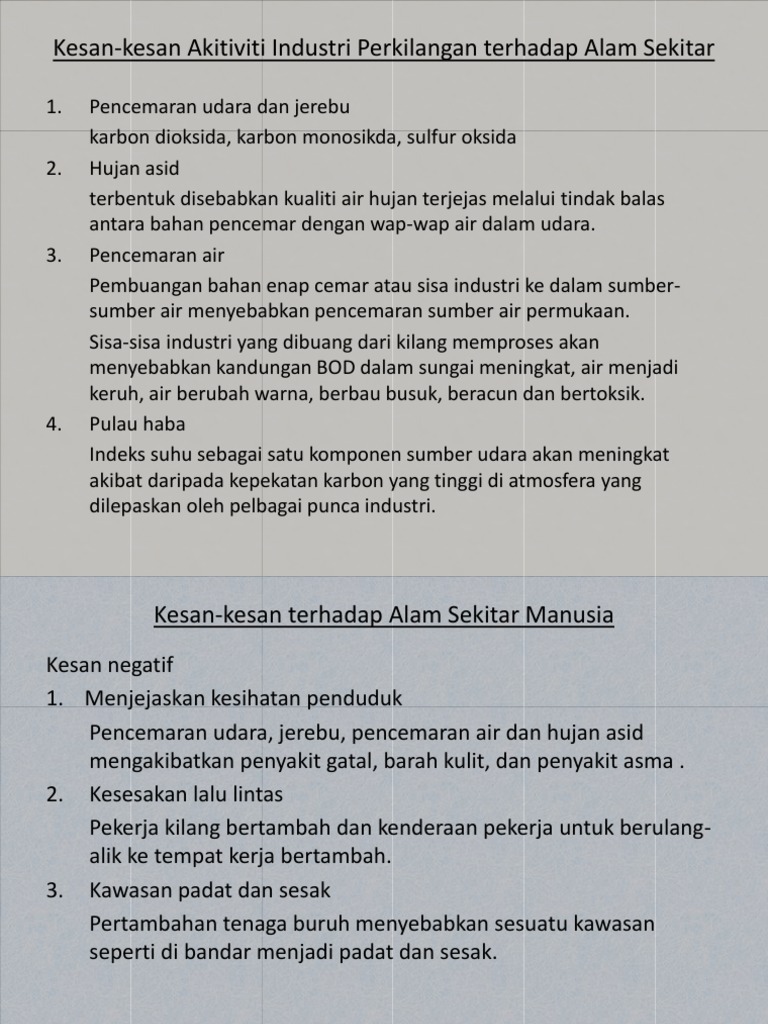 Kesan Kesan Akitiviti Industri Perkilangan Terhadap Alam Sekitar Pdf